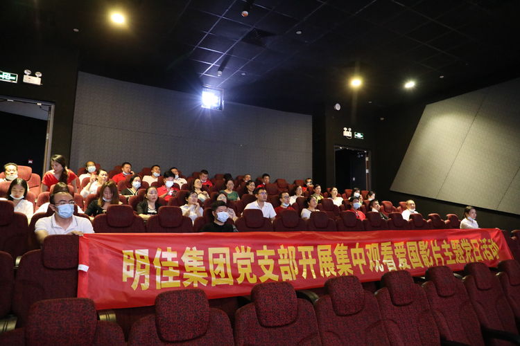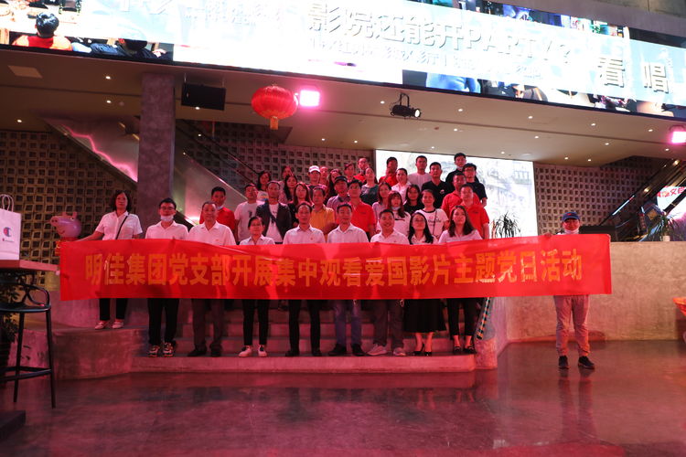 在三亞明佳集團黨支部書記、董事長陳明的帶領下,明佳集團黨員及群眾共53人參加集中觀看愛國影片主題黨日活動