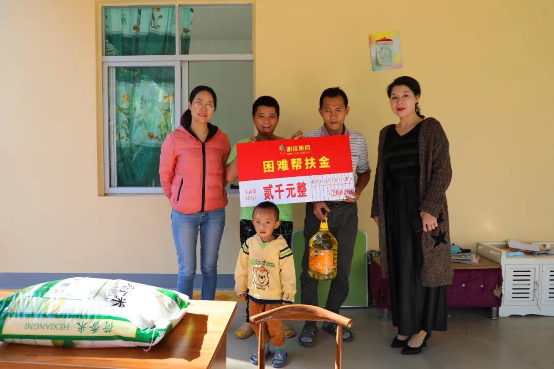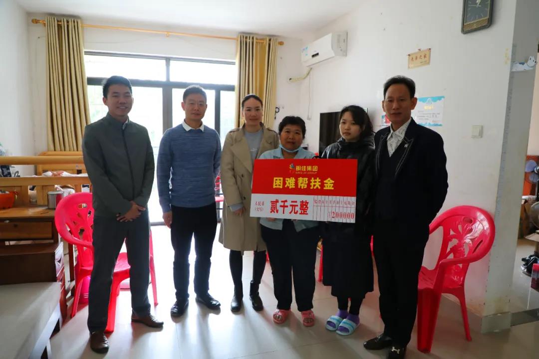 2021年1月12日,明佳集團黨支部書記、董事長陳明,副總裁羅京軒,工會主席高斐斐,副主席李萍及婦聯(lián)主席熊牡丹一行前往慰問困難職工,為他們每人送上了2000元的幫扶金以及米、油等生活物資,還貼心地為有孩子的職工們送去一套學習桌椅。