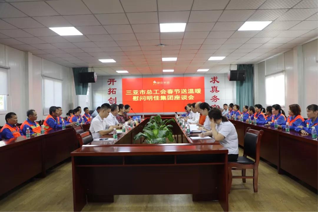 最后,慰問團(tuán)一行來到三亞明佳園林環(huán)衛(wèi)集團(tuán)有限公司召開座談會。會上,慰問團(tuán)展開討論了高齡、高風(fēng)險環(huán)衛(wèi)從業(yè)人員的權(quán)益保障問題,并詳細(xì)了解了企業(yè)職工在工作、生活中存在的問題,并認(rèn)真聽取他們的訴求和建議。