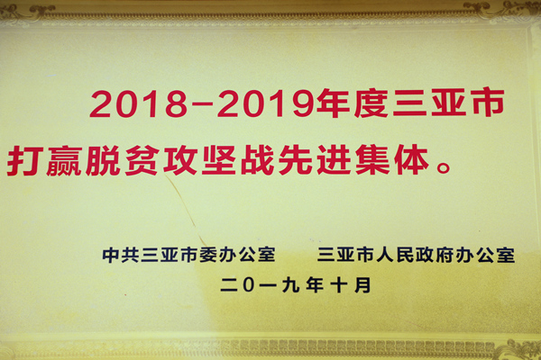 明佳集團榮獲2018-2019年度三亞打贏脫貧攻堅先進集體”稱號